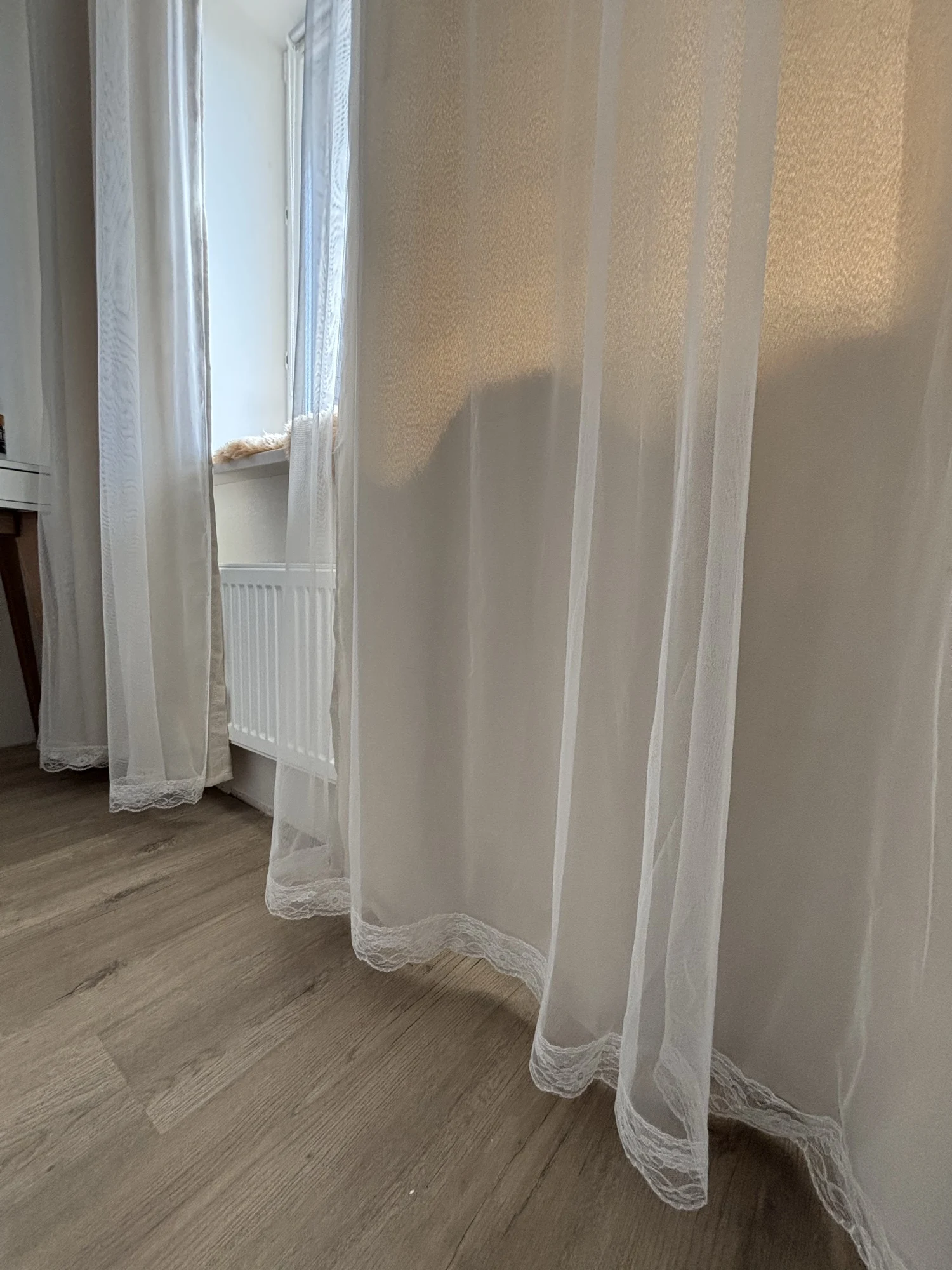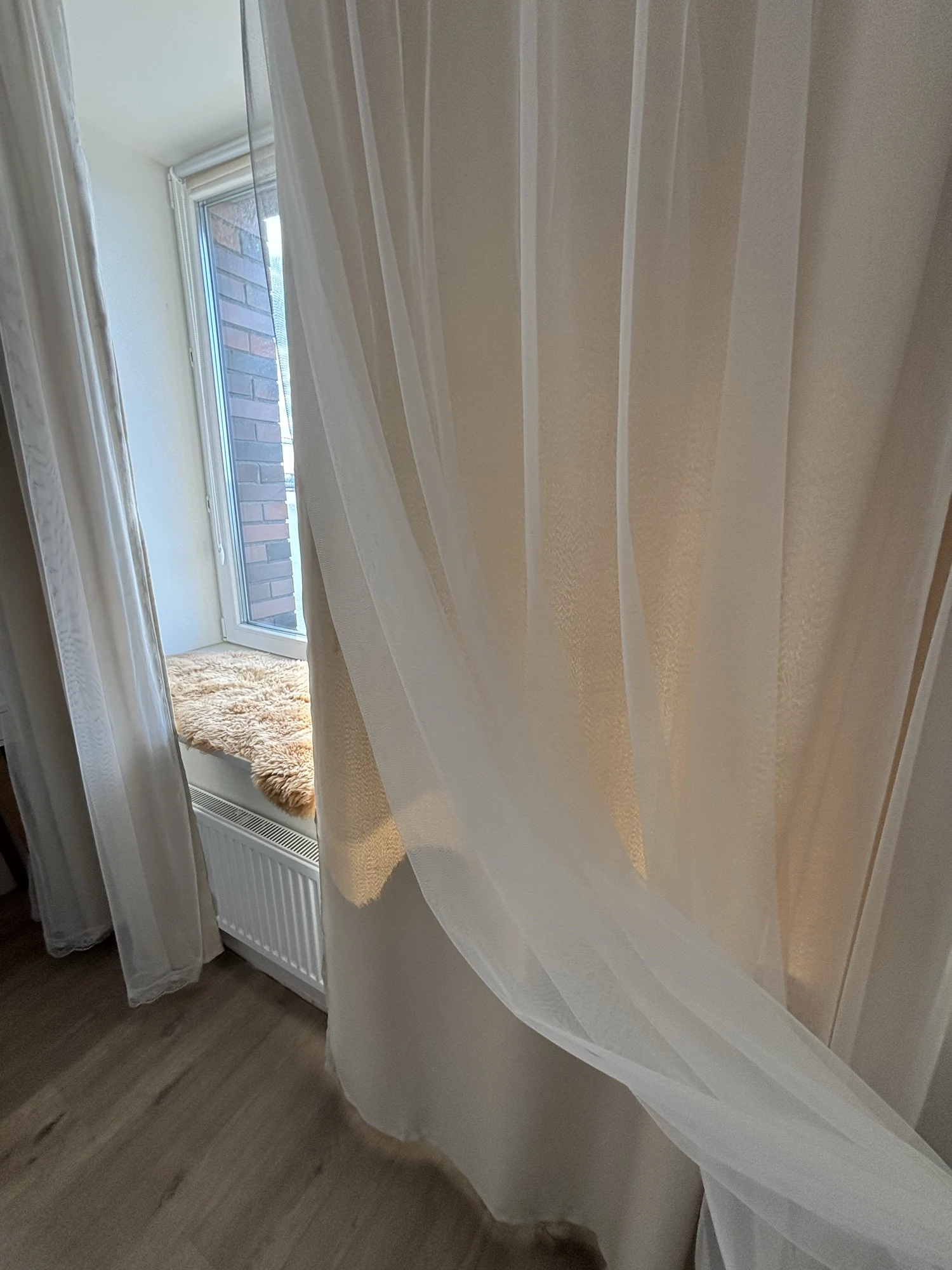La qualité est excellente, ils ne laissent pas passer la lumière du soleil ! Le vendeur est très communicatif ; j'ai demandé la taille dont j'avais besoin et il a tout fait comme convenu. La livraison est longue... les rideaux ont besoin d'être bien repassés et ils se redresseront parfaitement !