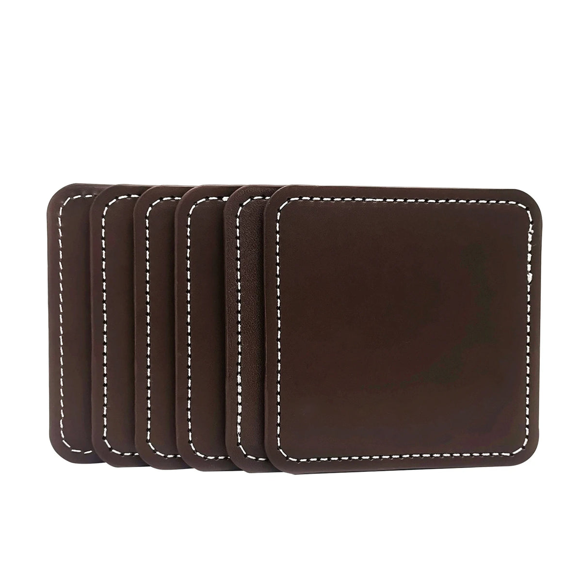 Dessous de verre cuir grain bambou étanche 6 pièces élégants