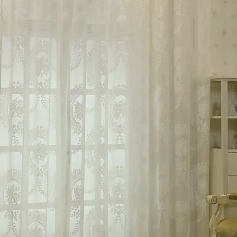Rideau décoratif blanc avec motif floral, idéal pour embellir votre intérieur. Ce modèle élégant apportera une touche de raffinement à votre pièce. Installation facile sur tringle, parfait pour salon ou chambre. Accessoire de décoration lumineux et chic.